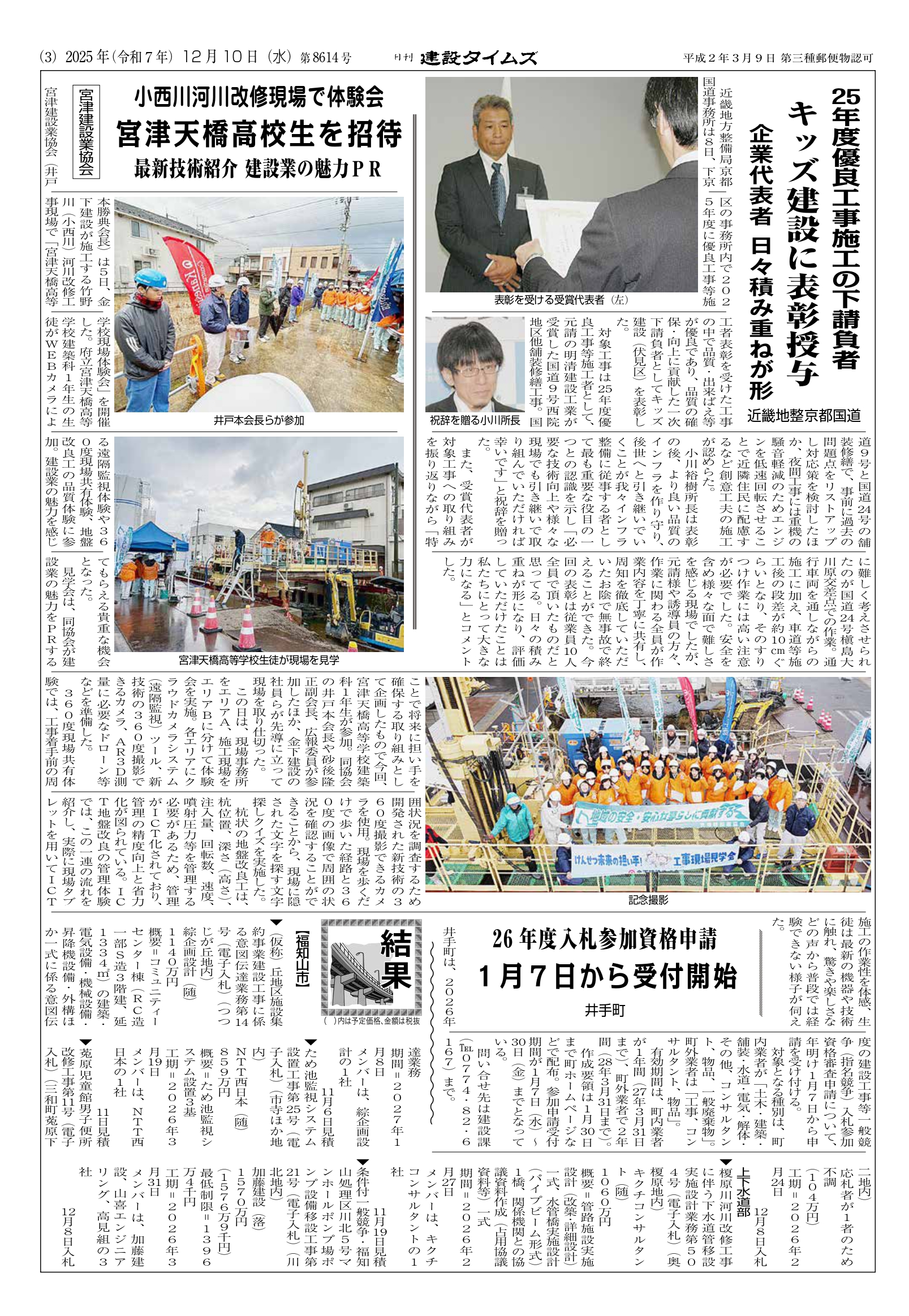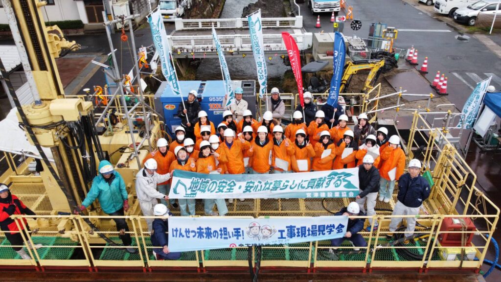 令和7年12月5日、金下建設㈱にご協力いただき、 竹野川(小西川)広域河川改修(加速化2級・防災安全)工事 宮津天橋高校現場体験会を実施いたしました。宮津天橋高校宮津学舎の建築科の生徒にきていただき土木の現場を体験していただきました。